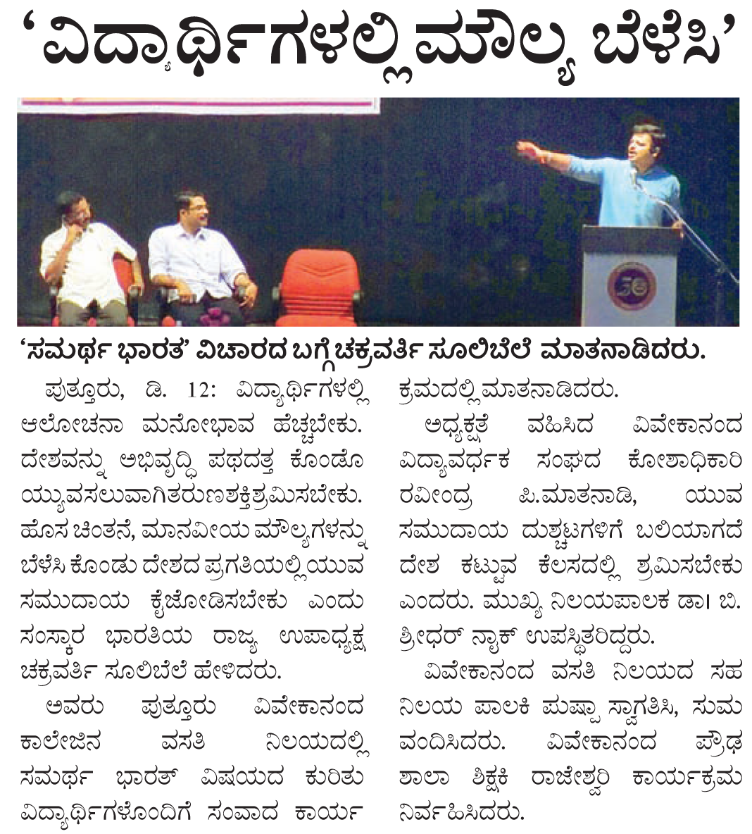 ಪುತ್ತೂರು, ಅ.30: ಮೌಲ್ಯಯುತ ಮತ್ತು ಕೌಶಲ್ಯಾಧಾರಿತ ಶಿಕ್ಷಣದ ಜೊತೆಗೆ ವಿವಿಧ ಆಯಾಮಗಳಲ್ಲಿ ಆತ್ಮನಿರ್ಭರ ಭಾರತದ ಉದ್ದೇಶವನ್ನು ...